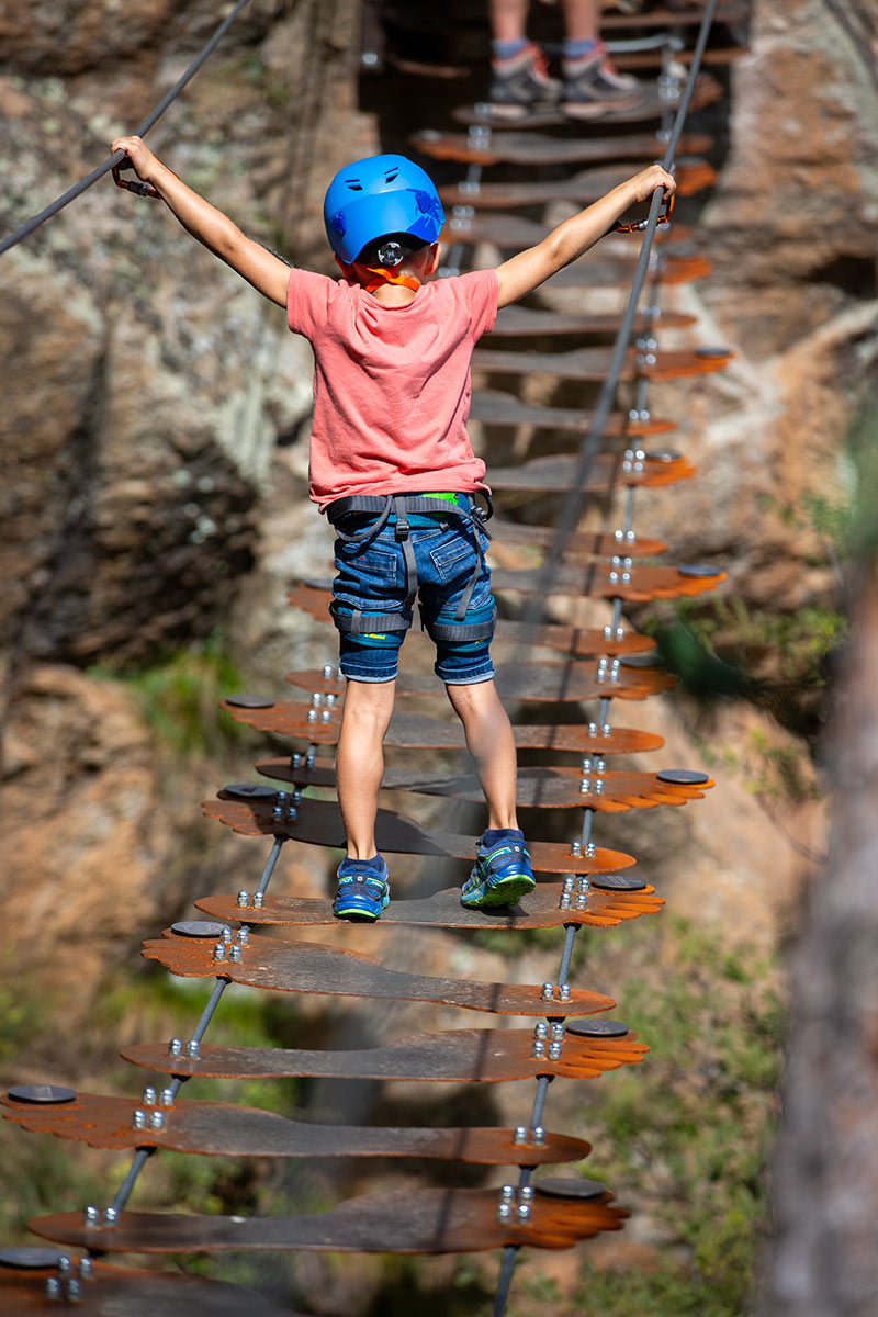 Der La ferrata da allenamento e per famiglie “KNOTT” (rupe) si trova sulla roccia su cui è ancorata una piattaforma panoramica Dalla stessa si può godere di una grandiosa vista in profondità sulle singole vie e sugli scalatori che le percorrono. In totale sulla „KNOTT“ si sviluppano quattro vie ferrate, una corta via di collegamento, un ponte sospeso lungo 25 m e due ripide scalette metalliche. Qui ci si può arrampicare e allenarsi a piacere. Semplici percorsi, passaggi difficili, tratti esposti e tecnici. Ad ogni ora del giorno, dato che i tratti di accesso e di discesa sono brevi.